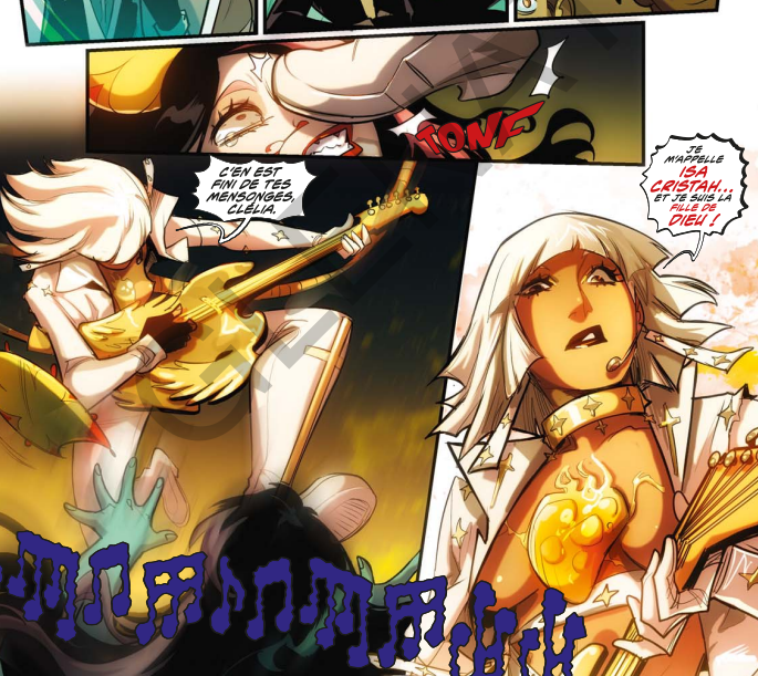 Mirka Andolfo – Pour toute l’histoire, je me suis beaucoup inspirée du groupe de métal Ghost. Concernant le personnage de Clélia, qu’il s’agisse de son caractère comme de ses tenues, je me suis tournée vers Lady Gaga.