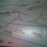 Il était accompagné dans ses chants par ses fidèles musicien que nous connaissons bien puisqu’ils officient aussi sur Les concerts de dessins : Dondieu Divin, Bobby Jocky, Yan Péchin et Patrick Baudin.