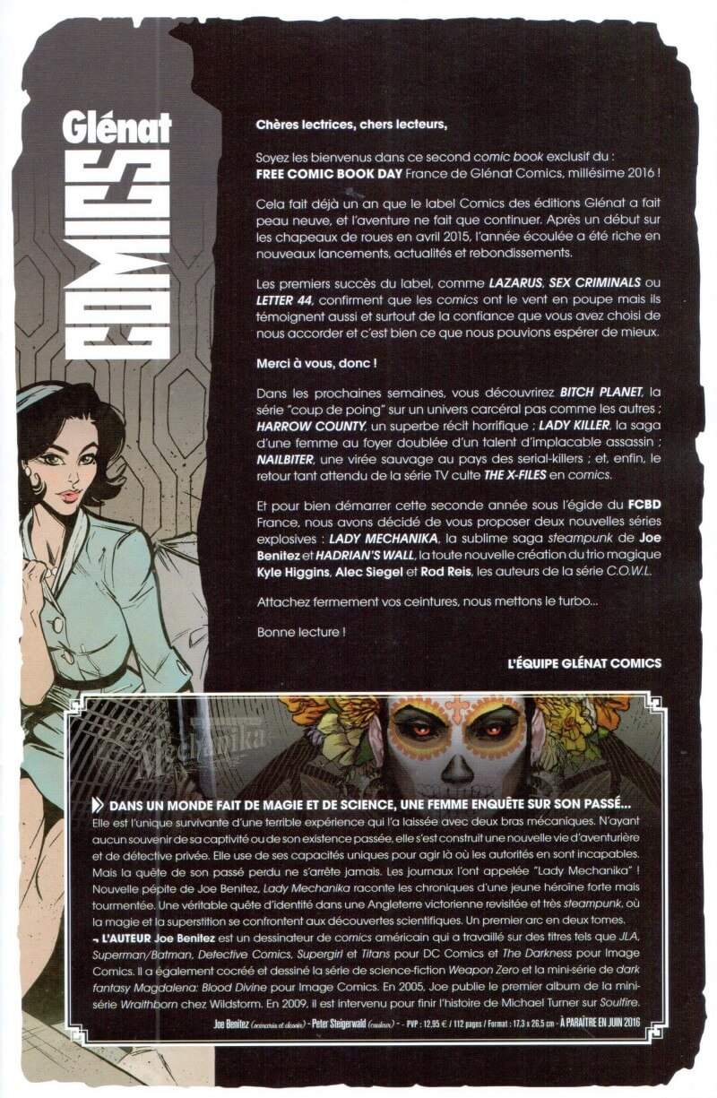 En France certaines librairies relayent le FCBD depuis 2011, mais ce n’est qu’à partir de 2014 que les éditeurs français ce sont prêtés au jeu. Les premiers participants étaient Panini Comics (Spider-Man, Avengers, X-Men…) et Delcourt (Hellboy, Spawn, Walking Dead…) très vite rejoints par Urban comics (Batman, Superman, Justice League…), Glénat (Infinite loop...) et bien d’autres par la suite. L’édition 2016 était constituée de 7 comics. Nous vous proposons donc de vous les faire découvrir,