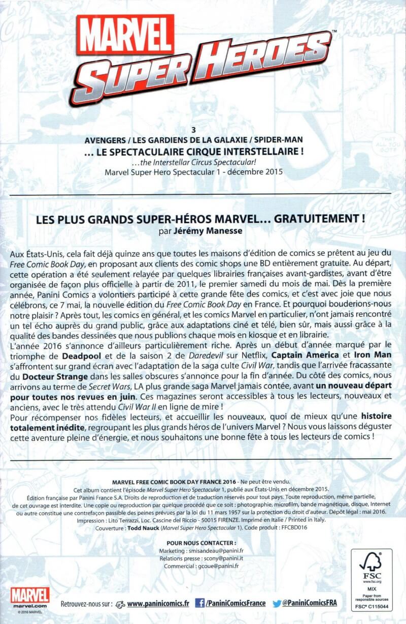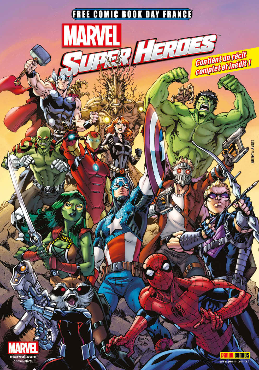 - Marvel super heroes : Crossover entre les Avengers, les Gardiens de la Galaxie et Spider-man, ce récit prend un parti plus enfantin que ce que l’on a l’habitude de lire chez Marvel mais reste tout de même plaisante à découvrir pour cette journée spéciale qu’est le FCBD. On regrettera tout de même l’absence de certaines familles de super-héros comme les X-men …