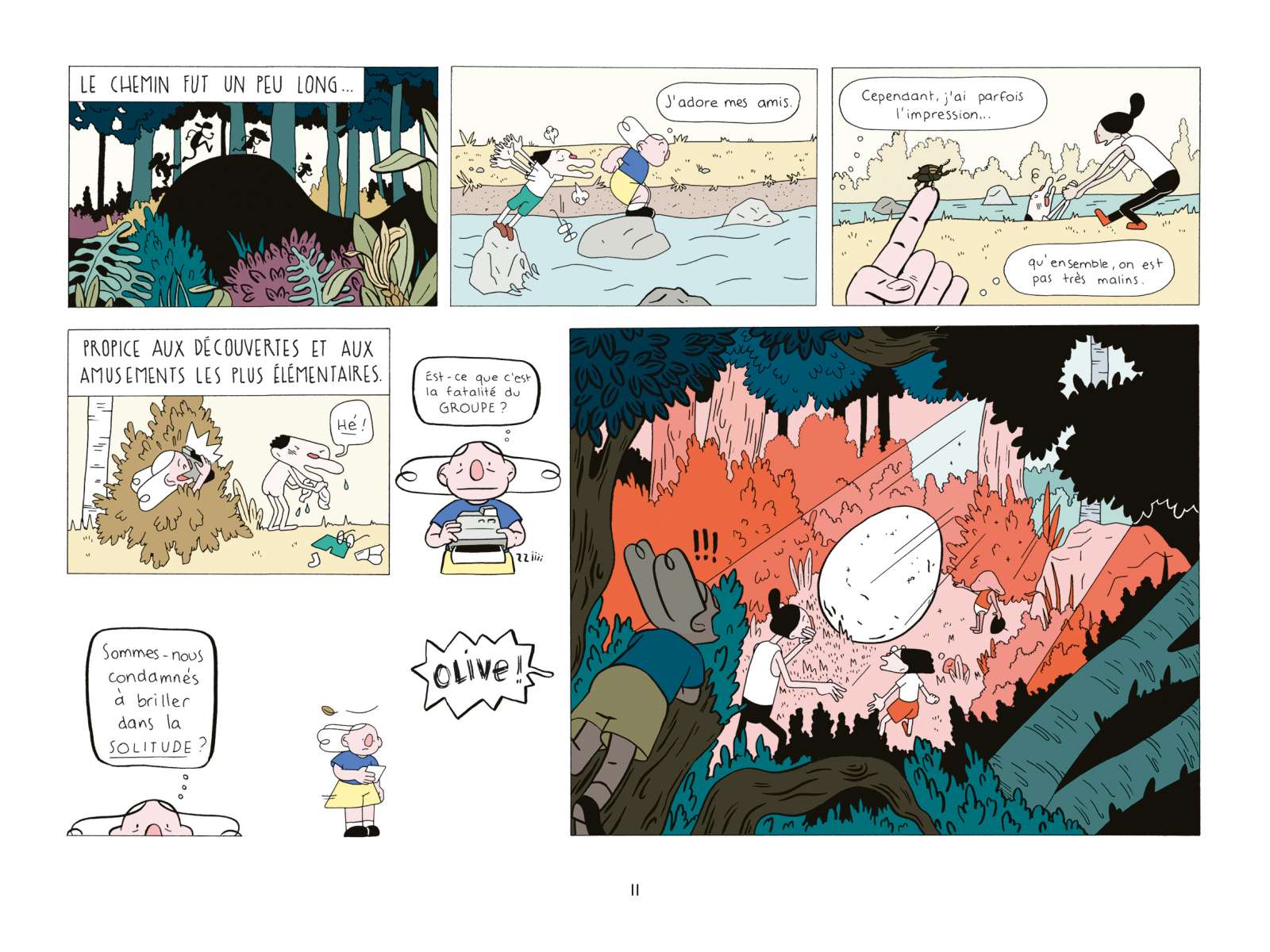 Finalement, Olive se trouve toujours des potes en chemin. Au début du tome 1, il y a l’ornithorynque avec qui elle passe un petit moment. Elle est quand même assez candide.