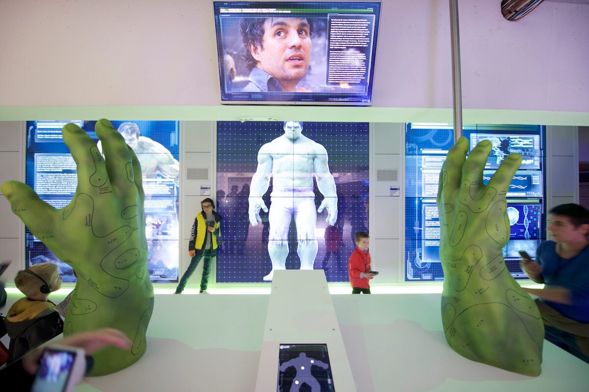 Pour développer l’Exposition, Nicholas Cooper a fait appel à La NASA, le Science & Entertainment Exchange (un programme de l’Académie nationale américaine de science), Neuroverse et Thwacke – imminentes structures scientifiques dans le Monde – qui se sont prêtées au jeu avec malice. Ainsi elles apportent des explications sur les armures de Tony Starck ou encore sur les effets neurologiques lors de la transformation de Hulk.