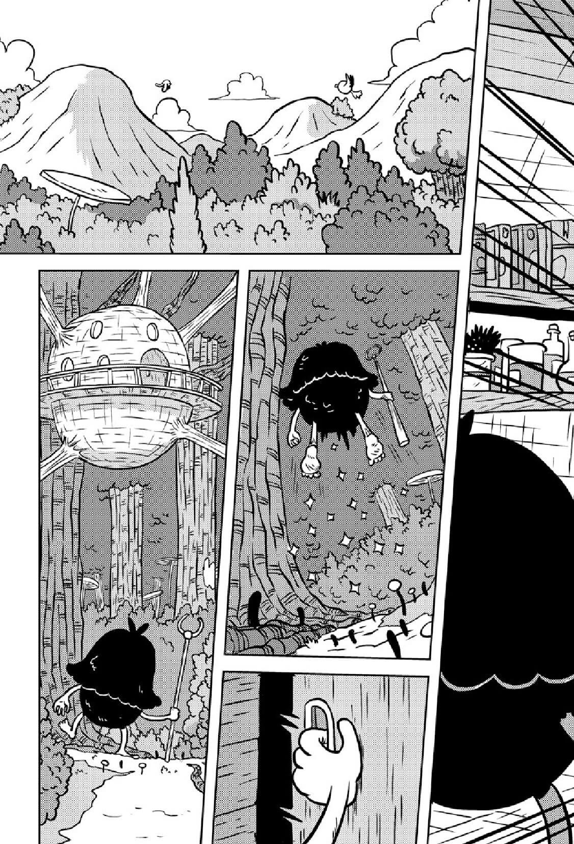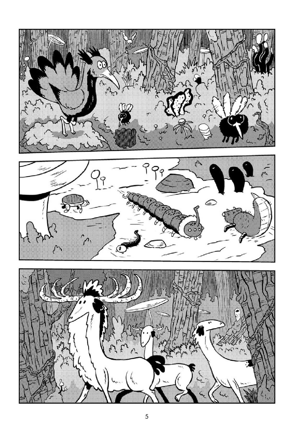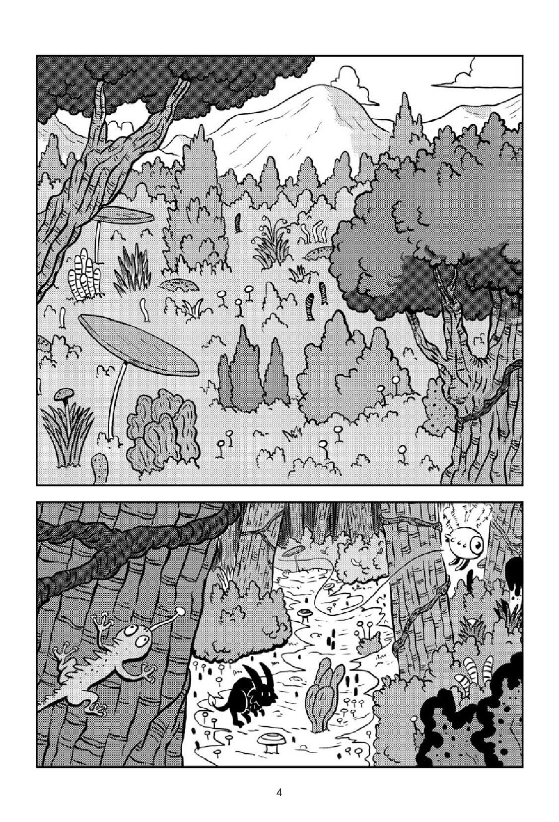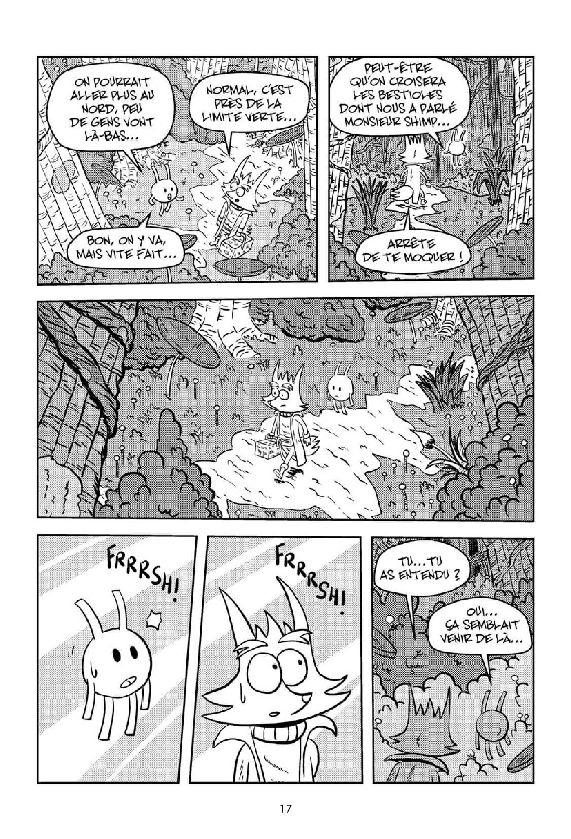 De mémoire, il me semble que je ne l’avais pas ouvert de la sorte. C’est Fabien Grolleau, mon éditeur chez Vide Cocagne, qui m’a incité à rajouter des planches dans la nature. Je pense aussi que c’est pour cela qu’il a signé mon projet parce qu’il y a de la nature – il aime cela et c’est un peu sa marque de fabrique – et un univers végétal assez foisonnant.