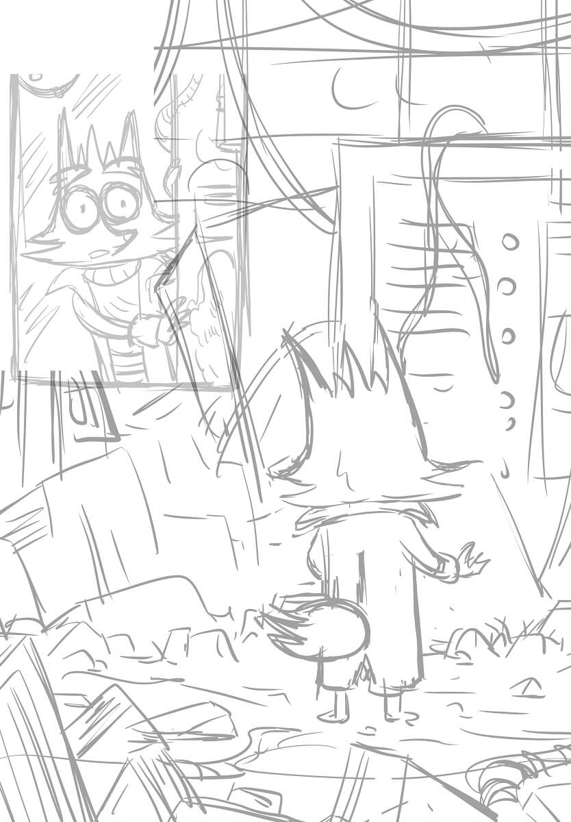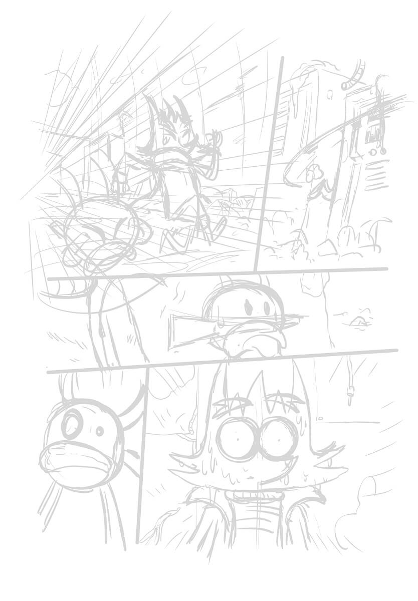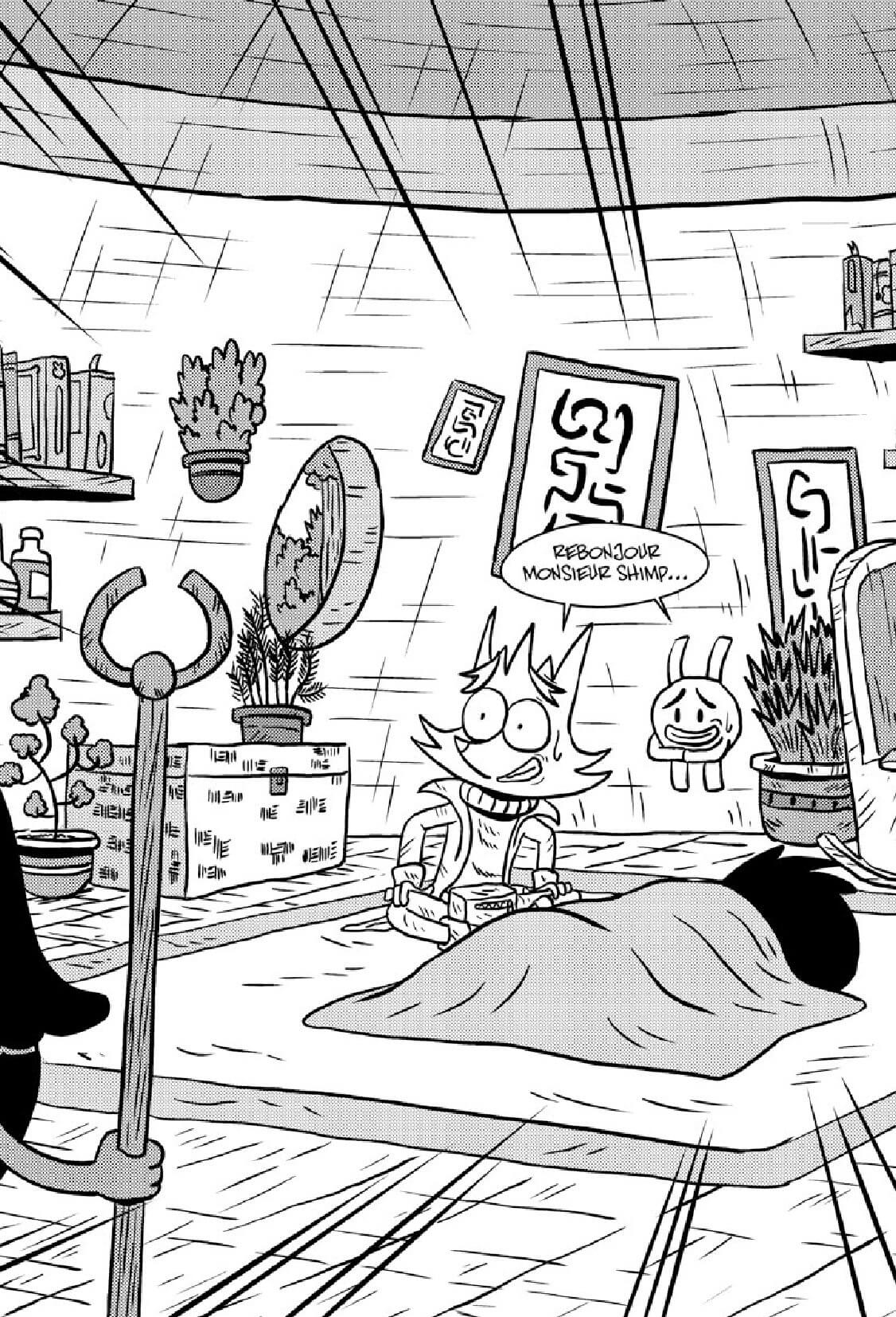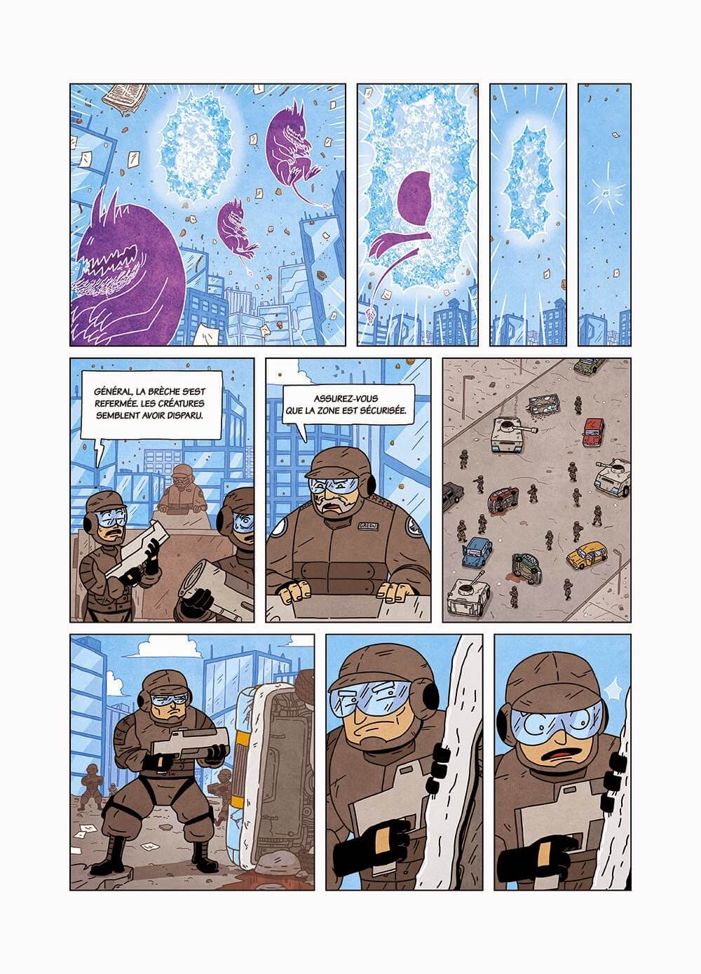 Je leur ai dit que je voulais faire une bande dessinée populaire inspirée par le manga et le comics mais aussi celle des années Pilote. J’imaginais un album métissé comme mes influences : mangas, jeux vidéos, animation et comics. Je voulais créer une histoire que les enfants aimeraient, généreuse, avec de l’aventure et des trucs rigolos.