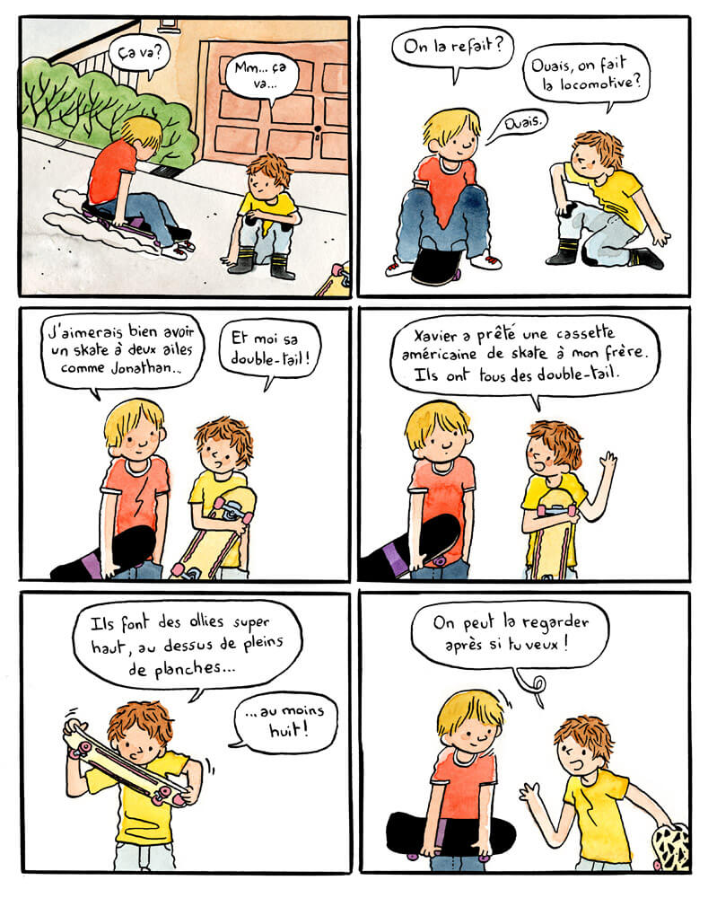 Cela fut simple, j’étais libraire et je me suis rendu compte qu’il y avait un vide par rapport aux adolescents. J’avais l’impression qu’il y avait beaucoup d’ouvrages Jeunesse pour les plus petits, qu’il y avait de la bande dessinée pour les grands adolescents (héroïc-fantasy, manga…) mais que la période du début de l’adolescence, c’était une chose dont on parlait assez peu. Et quand on en parlait, c’était hyper caricatural, assez négatif : les ados sont idiots, ne savent pas parler, ne se tiennent pas bien ou sont grossiers. L’adolescence était pour moi, une période très intéressante, hyper intense : les amitiés étaient intenses, les premiers sentiments amoureux super intenses. Ado, je faisais du skate et de la musique avec mes potes, on était toujours à fond.
