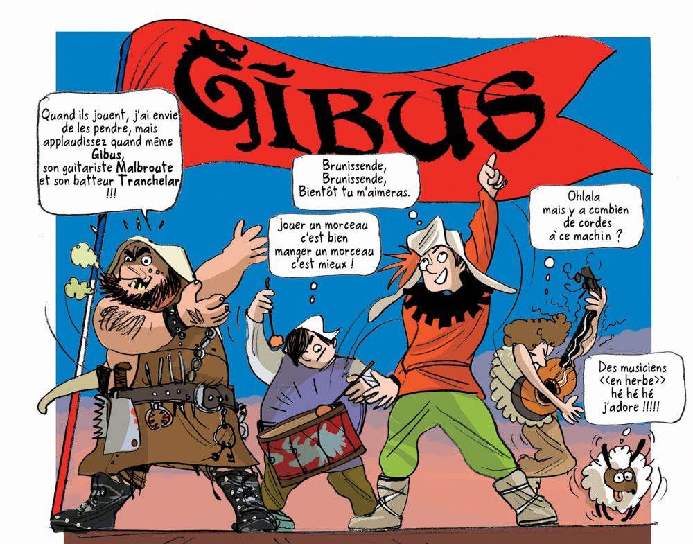 Résumé de l’éditeur : Saviez-vous que l’amitié, les bêtises et les joies de l’adolescence n’avaient pas d’âge ? Car Gibus et sa bande d’amis, venus tout droit du Moyen Âge, ont les mêmes préoccupations que les jeunes lecteurs… les téléphones et les ordinateurs en moins ! Le père de Gibus est un seigneur en guerre contre les Anglois, lui veut passer son permis monture pour conduire un cheval et son animal de compagnie est un mouton… que son père aimerait faire cuire quand la famine menace. La routine, quoi ! Au temps de Gibus, rien n’est grave, et tout est prétexte à de grands éclats de rire.