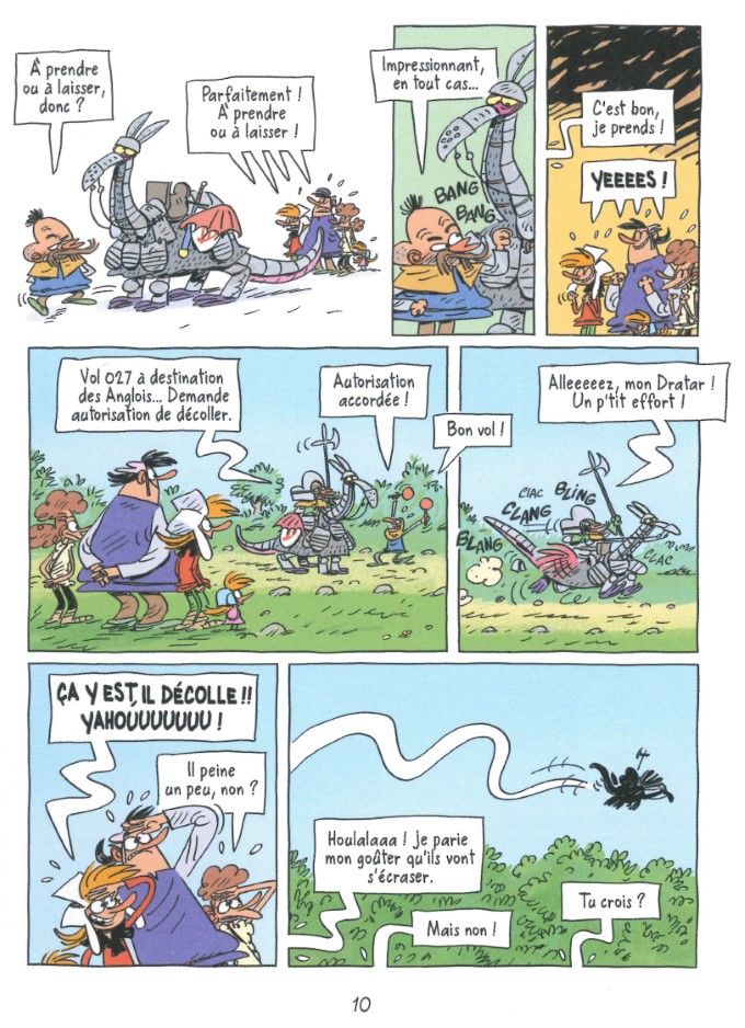 Lorsqu’on a écrit la “Bible” de la série avec Philippe, le personnage s’appelait Adalbert. Il disait : “Je m’appelle Adalbert, j’ai onze ans, j’ai des boutons plein la gueule, c’est le début de la Guerre de Cent Ans et tout le monde s’en fout !” On a donc fait démarrer la bande dessinée en 1337.