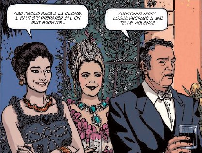 Jean Dufaux : Il y a quelque chose de très important pour moi, c’est la mémoire culturelle. Je considère qu’elle s’effrite, qu’elle se fragilise. Quand je cite Luchino Visconti, Pier Paolo Pasolini, ou bien si je parle de grands écrivains italiens comme Elsa Morante, Alberto Moravia, Dino Buzzati, les gens commencent tout doucement à ne plus savoir qui sont ces gens-là. C’est peut être pour cela aussi que ce roman graphique a été écrit, pour dire qu’il y a des gens qui nous ont laissé des choses importantes. La voix de la Callas peut être présente à vos côtés pendant toute une vie. De même pour les écrits et les films Pasolini ou les films de Luchino Visconti.