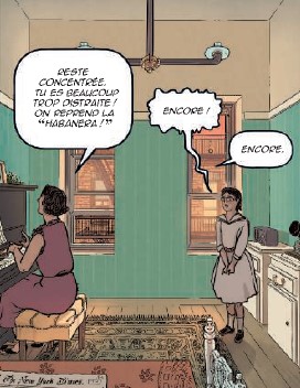 Quand j’ai dû la représenter en train de chanter, il fallait également que je montre sa gestuelle. Elle a une personnalité quand elle chante. Mais elle en a une autre dans l’intimité. J’ai donc cherché cette personnalité plus intime. Parfois elle est la cantatrice, parfois elle est la femme, tout dépend des cases.