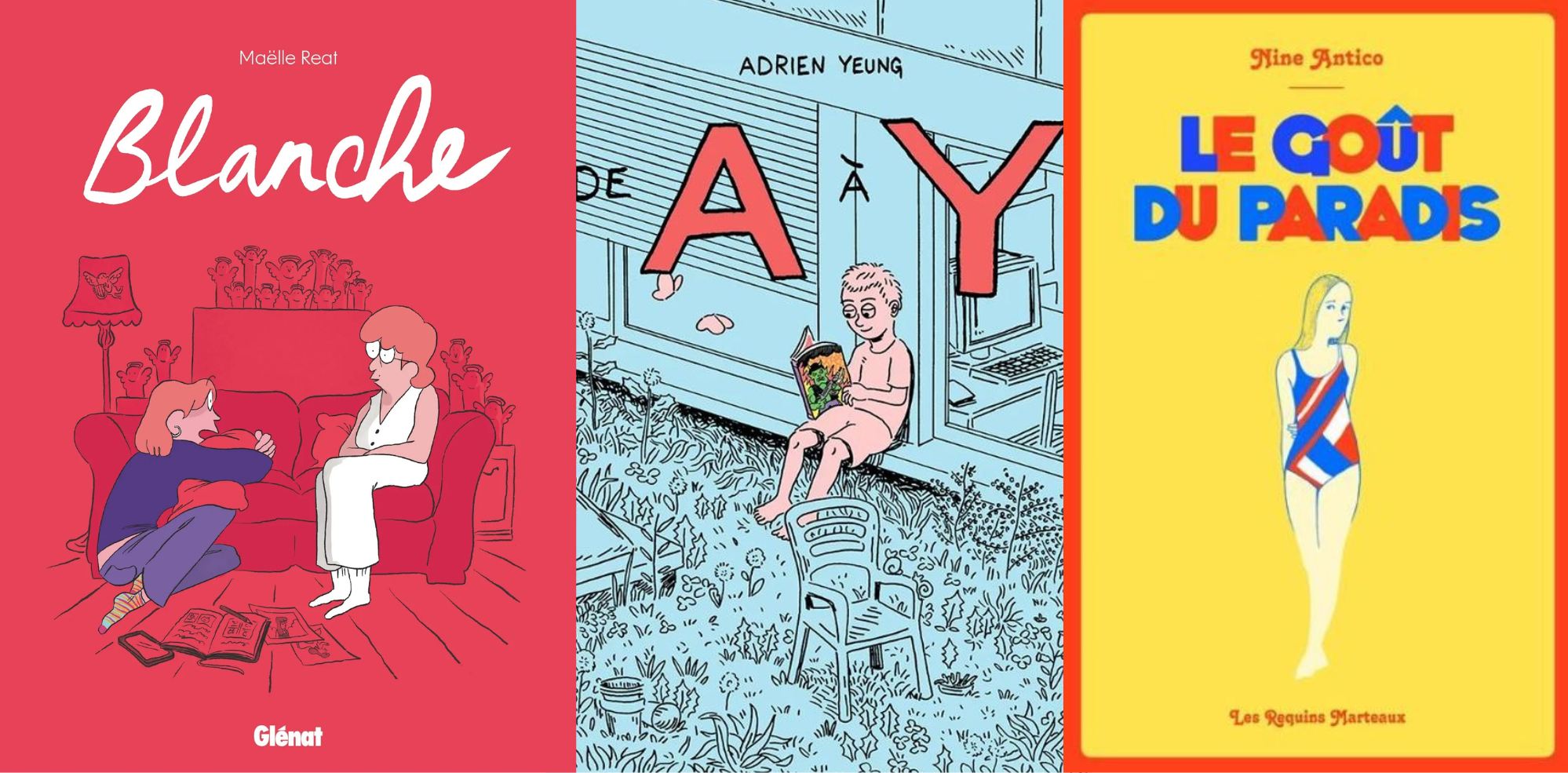 Bien oui, en recommandations de bandes dessinées, je vous conseille de lire un album qui s’appelle De A à Y de Adrien Yeung qui est sorti chez Exemplaires il y a… six mois, je pense ? Blanche de Maëlle Réat [avec également une interview disponible ici] chez Glénat, très très bon livre et je ne l’ai pas encore lu mais je suis à peu près sur que Une Obsession, le nouvel album de Nine Antico va être incroyable.