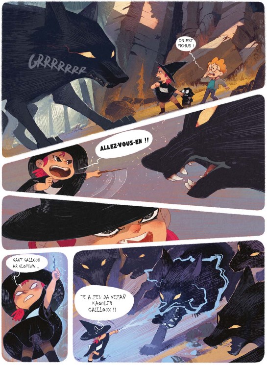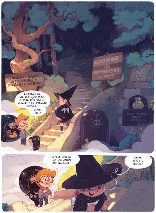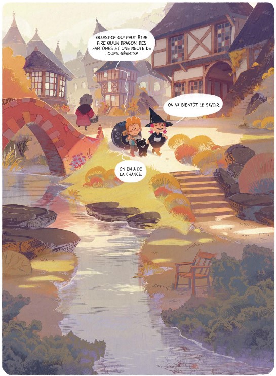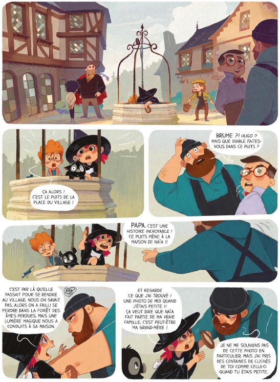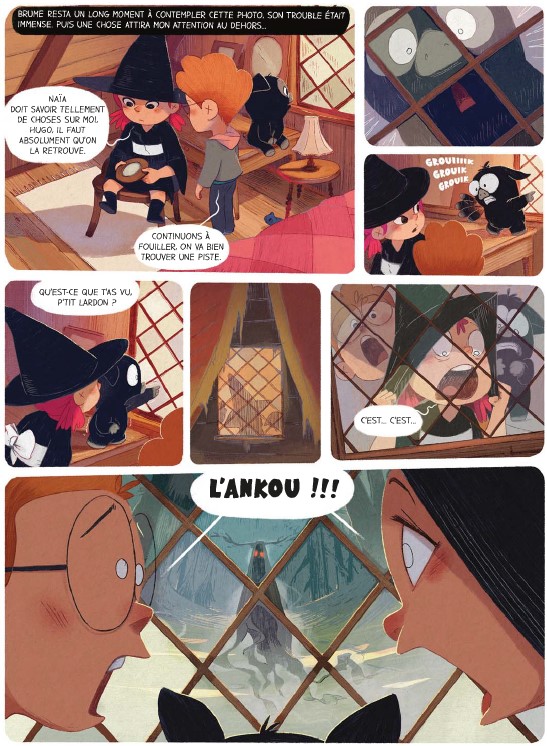 Résumé de l’éditeur : Le grand frisson Après avoir terrassé le dragon, Brume apprend qu’elle est en possession du grimoire de Naïa, la puissante sorcière qui veillait jadis sur son village et qui a disparu depuis de longues années. La fillette est bien décidée à dissiper le mystère qui entoure cette disparition ! Toujours accompagnée de son fidèle assistant, le petit cochon Hubert, et d’Hugo son meilleur ami, Brume entreprend la plus dangereuse des quêtes : trouver l’antre de Naïa ! La bâtisse se situerait au plus profond de la forêt des âmes perdues, or selon la légende, quiconque pénètre dans ces bois hantés se perd pour l’éternité… Nos aventuriers vont rapidement se retrouver en très mauvaise posture car dans les profondeurs de la forêt, là où le soleil ne brille jamais, une créature terrible rôde… Brume va-t-elle réussir à s’approcher de Naia et à rassembler par la même occasion les morceaux de sa propre histoire ? Perdus, nos trois amis sortiront-ils indemnes de leur expédition ? Toujours aussi drôle et inventive, Brume poursuit son chemin et affirme son caractère à travers cette série désopilante qui continue de nous faire rire avec des dialogues savoureux, un dessin doux et soigné et une héroïne fort attachante.