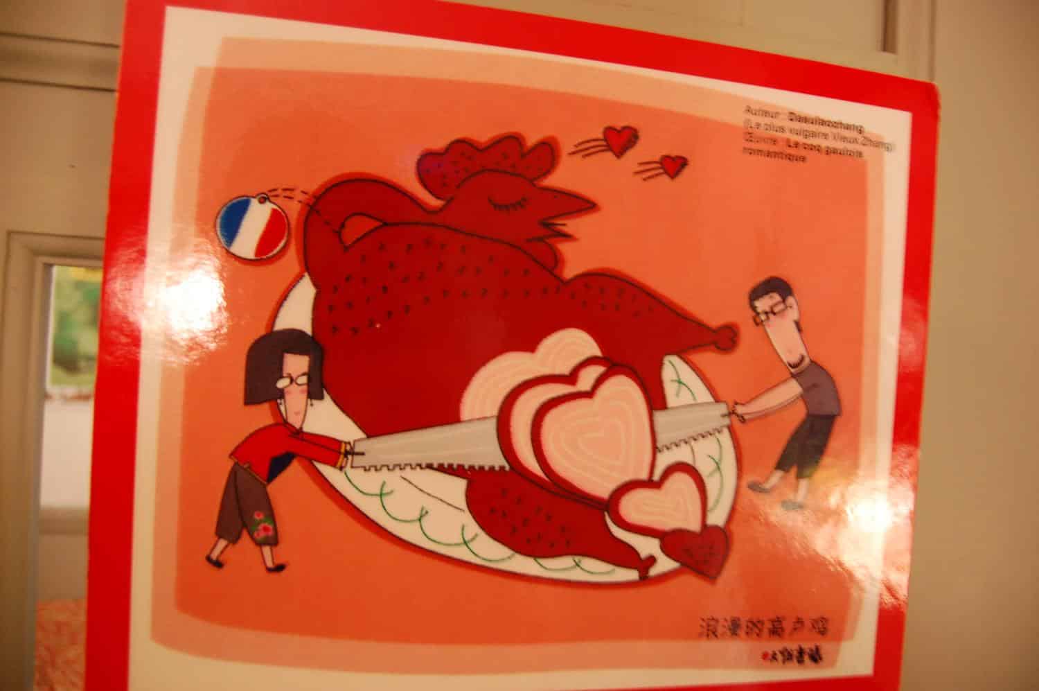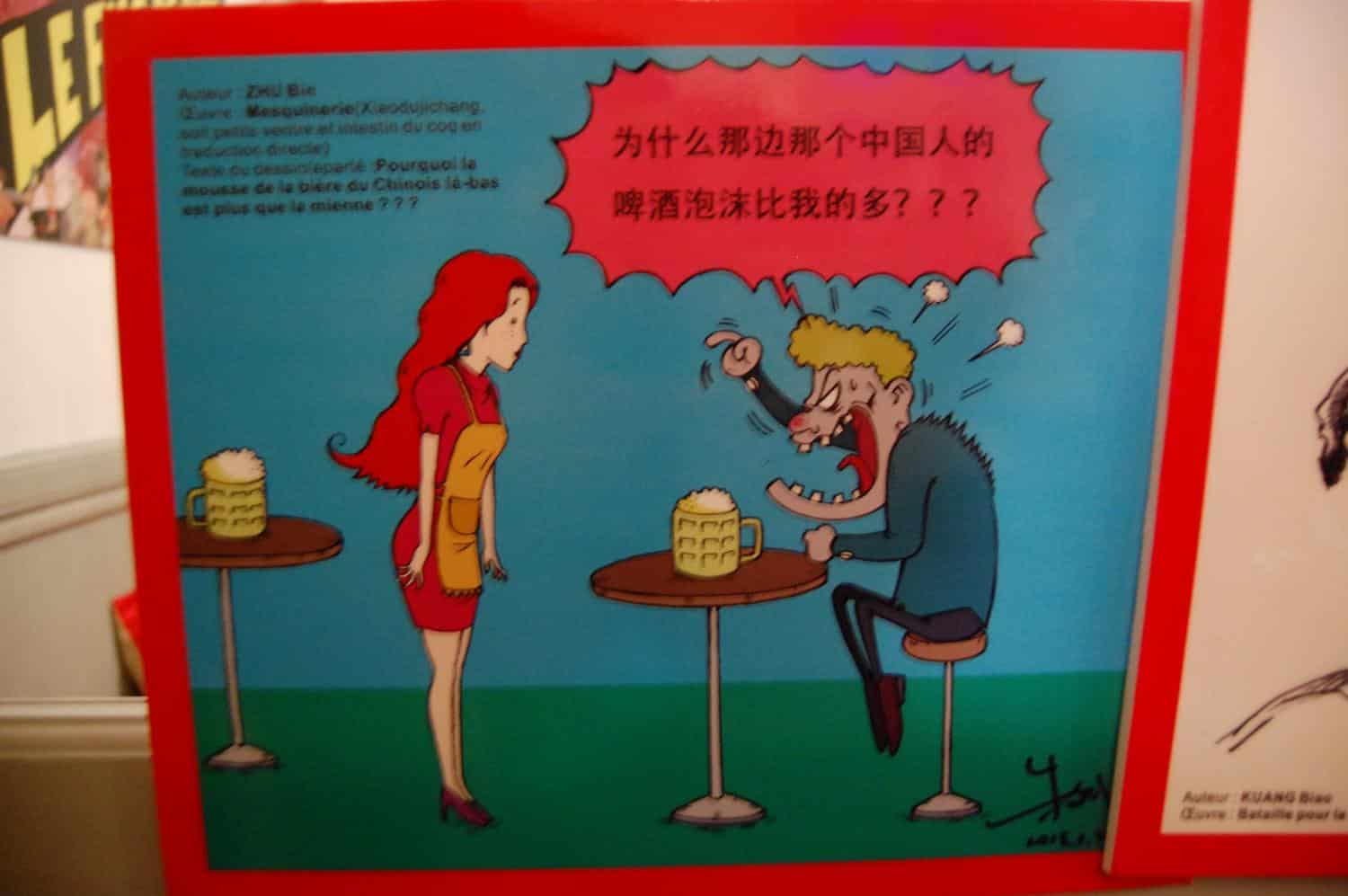 L’affaire a fait un peu de bruit en janvier, jusqu’au festival d’Angoulême, où les auteurs de Fluide Glacial ont invités les auteurs chinois présents à prendre l’apéro. Ceux-ci sont venus avec, en cadeau, des caricatures. Caricatures que les auteurs de Fluide Glacial se sont empressés d’afficher au milieu de l’exposition anniversaire qu’ils avaient bricolé de leur côté pour fêter les 40 ans du magazine. Tout en avouant qu’il n’y comprenaient, très honnêtement, pas grand-chose.