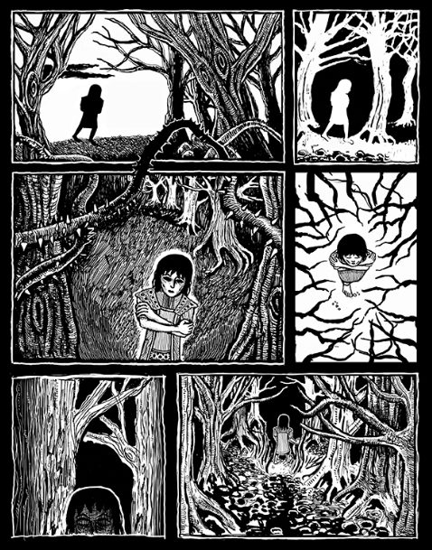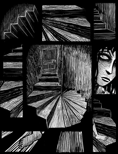 A travers Imastu, Jérémie Horviller se glisse dans les pas des artistes peintres comme Edvard Munch, fasciné par les hallucinations. Puisque sans texte, la partie graphique doit être à la hauteur, et c’est le cas. Quelle force dans le dessin ! Ses planches en noir et blanc comportent énormément de mystère(s) et procure un sentiment d’attirance-répulsion sur le lecteur. Les hachures et les grands aplats noirs accentuent les effets d’angoisse de la jeune héroïne.