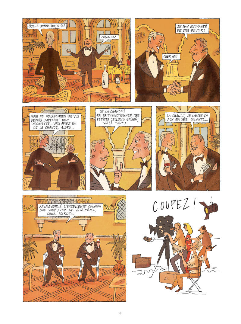 Après le sublime Ulysse les chants du retour, Jean Harambat est de retour avec Opération Copperhead et le lecteur sent qu’il s’est beaucoup amusé avec cet album. Folie douce, situations cocasses et loufoques, on ne sait pas vraiment démêler le vrai du faux. En jouant avec les autobiographies de David Niven (Décrocher la lune), de Peter Ustinov (Cher moi) et de Clifton James (I was Monty’s double) – l’on retrouve leurs textes parsemés çà et là dans le récit – l’auteur met en scène un récit réjouissant. Le duo Niven/Ustinov fonctionne à merveille, tel Blake & Mortimer (très so british), la loufoquerie en plus (un peu dans les pas de Philip et Francis de Veys et Barral). De plus, les scènes avec James – cornaqué pour ressembler à Monty – sont aussi très drôles.