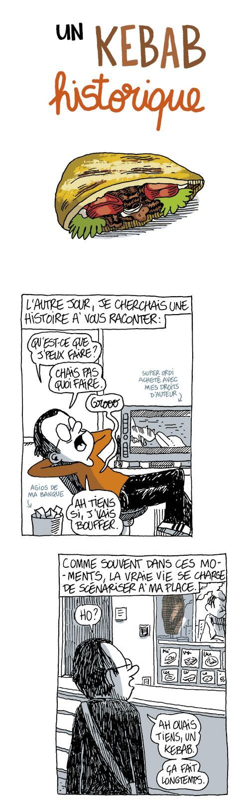 Il y a des auteurs qui commencent un blog pour apprendre à dessiner. Ce n’est pas le cas de Guillaume Long. Ce dessinateur et scénariste publie ses dessins et histoires depuis une dizaine d’années, principalement à destination du jeune public. Du coup, A Boire et à Manger, son blog BD, avait d’emblée un thème précis (la nourriture) et un but inavoué (le faire passer sur papier un jour ou l’autre).