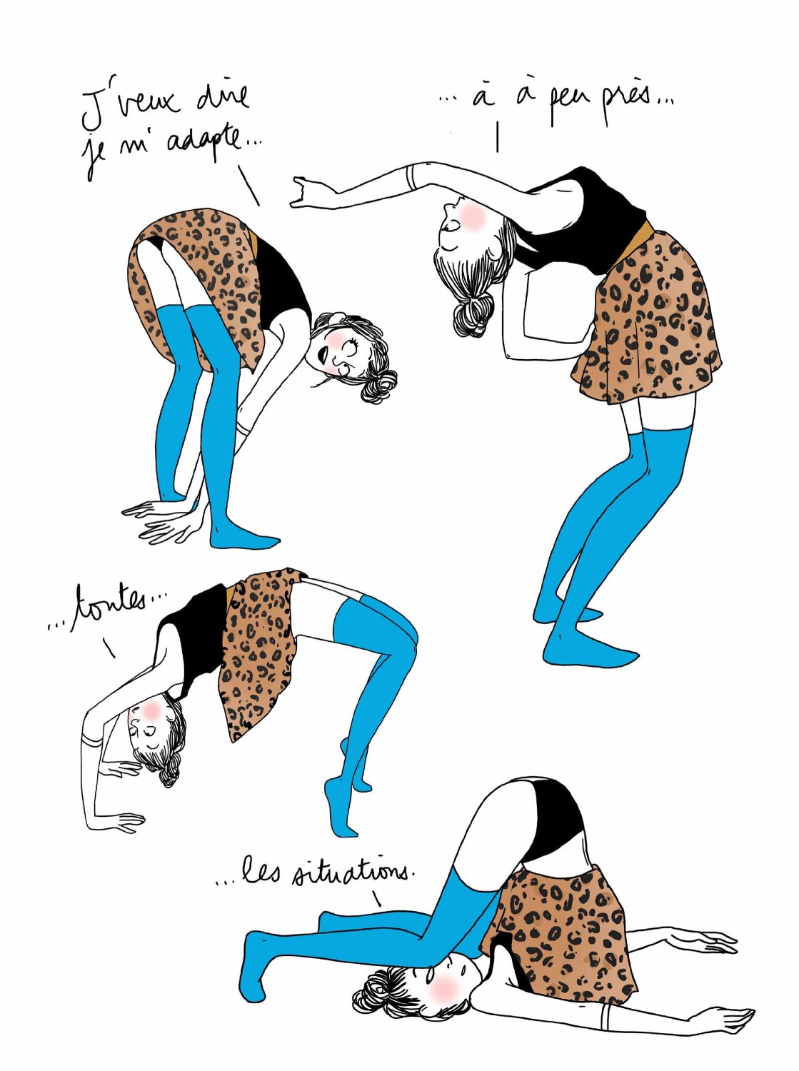 C’est peut être pour ça qu’elle est surtout connue comme illustratrice de magazines ou de pubs: au moins, entre les pages de papier glacé ou sur les affiches du métro, ses personnages savent se tenir (le plus souvent).